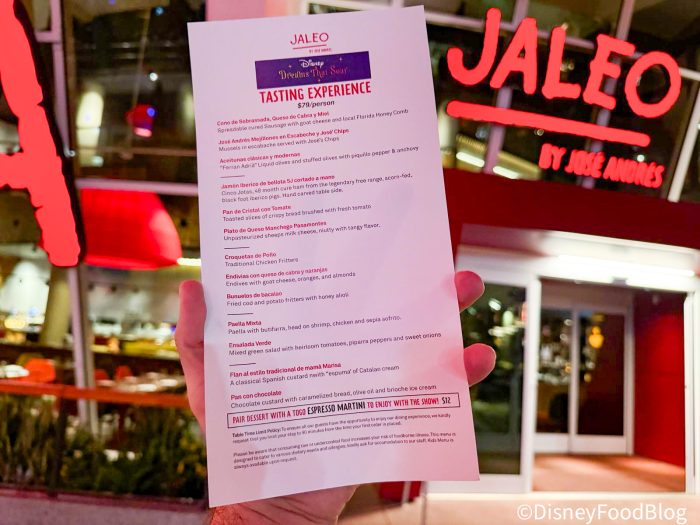 Jaleo is also offering a tasting experience where you’ll dine on tasty light plates along the restaurant’s lakeside for $79. Here’s a peek at the menu offerings: