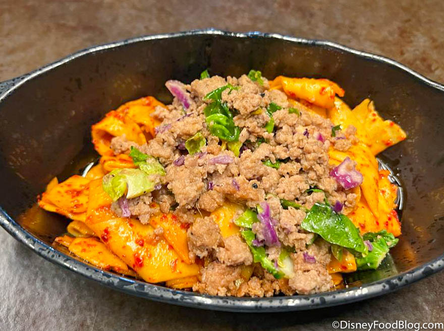 Breakfast options like the Morning Ronto Wrap and some of the best plant-based eats in Disney World (like the Zucchi Wrap) are also served here.