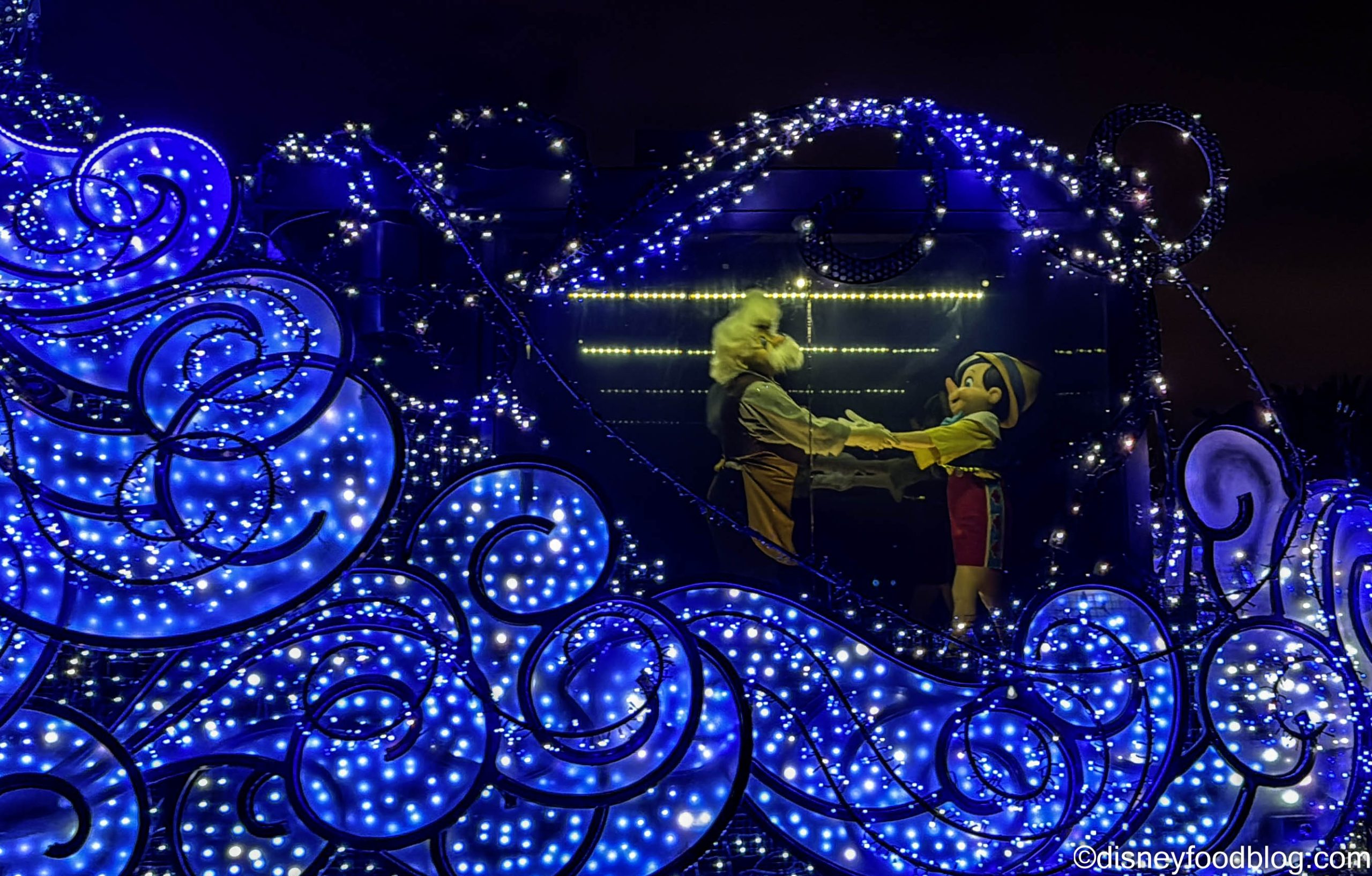 Disney Starlight features beloved characters from Walt Disney Animation Studios and Disney Pixar films, and some have made their nighttime parade debut in Disney Starlight! As it begins, Disney Starlight is “brought to life by the magic of the Blue Fairy” from the Disney animated classic, Pinocchio.
