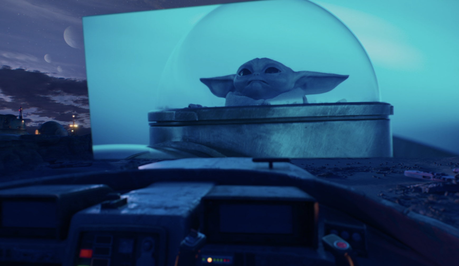 Four environments are available: “the Disney+ Theater, inspired by the historic El Capitan Theatre in Hollywood; the Scare Floor from Pixar’s Monsters Inc.; Marvel’s Avengers Tower overlooking downtown Manhattan; and the cockpit of Luke Skywalker’s landspeeder, facing a binary sunset on the planet Tatooine from the Star Wars galaxy.”
