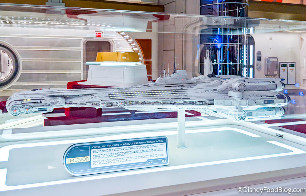 Guests can even see the Halcyon — a 100-cabin Corellian MPO-1400 model starcruiser built during “the romantic age of exploration” — through viewports as they approach!