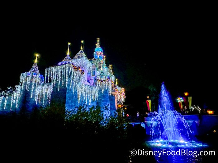 Speaking of Sleeping Beauty Castle, the park’s signature landmark is all dressed up with sparking icicles in the evenings for Wintertime Enchantment at Sleeping Beauty’s Winter Castle.