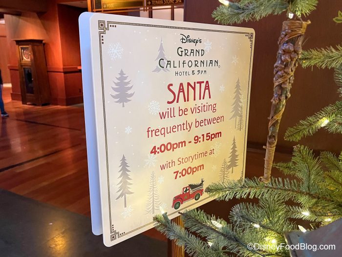 You may also find the times for meeting SANTA CLAUS at the Grand Californian posted in the lobby! Check with the front desk to confirm appearance dates.