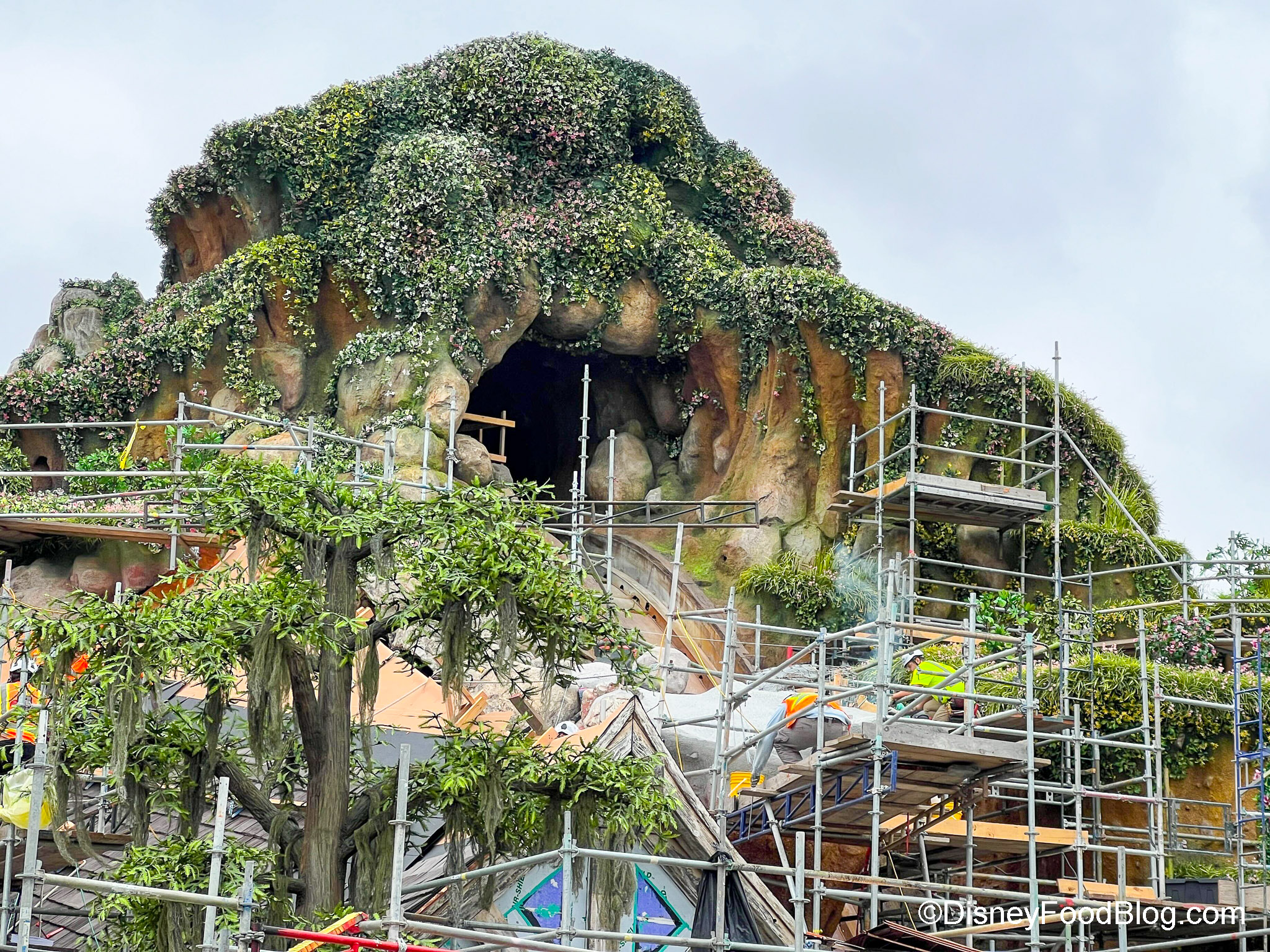 - They were putting the roof on part of Tiana’s ride building