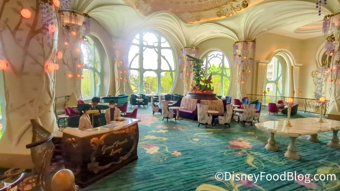 The hotel’s decor befits this regal theming, with guest rooms that are both decoratively and architecturally fantastical, with a rounded style reminiscent of classic Disney animation.