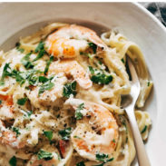 This recipe is music to my ears! Garlic, white wine, and shrimp. Yum!! Can’t wait to make this bad boy :p