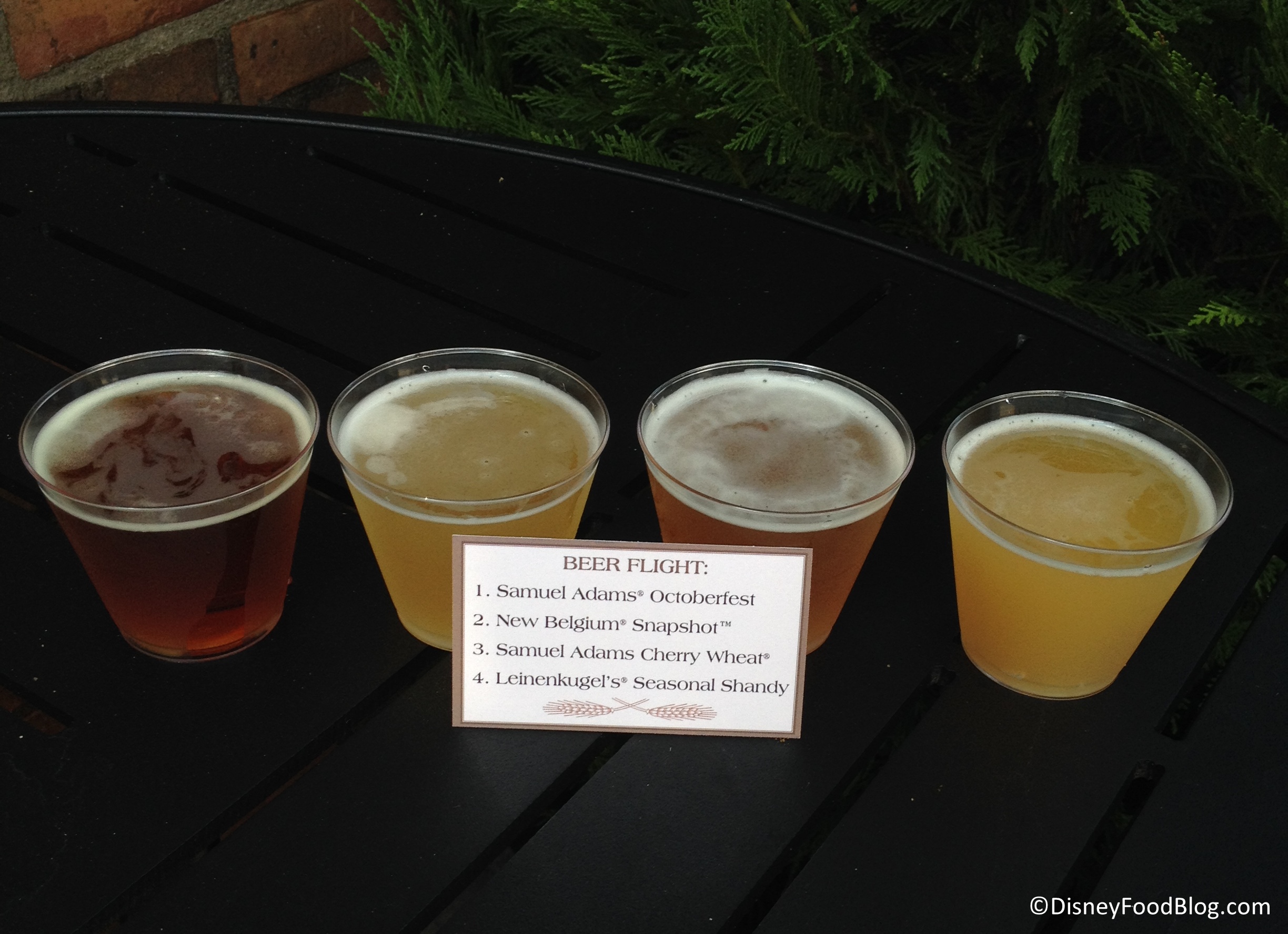 - Beer flight (featuring 4 4-ounce servings): Samuel Adams Octoberfest, New Belgium Snapshot, Samuel Adams Cherry Wheat and Leinenkugel’s Seasonal Shandy – $9.25