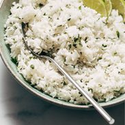 2. Add a handful of chopped cilantro to the rice with a large squeeze of lime juice.