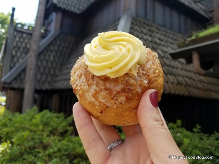 What’s missing? Well, for one… that Cinnamon Loaf we fell in love with when Kringla began serving breakfast once the Frozen Ever After attraction opened. We asked a supervisor and though she said she wasn’t 100% sure it’s gone for good, it’s not here now. It “may be a stay tuned” item. We sure hope so! In the meantime, though, check out the Cinnamon Pretzel!