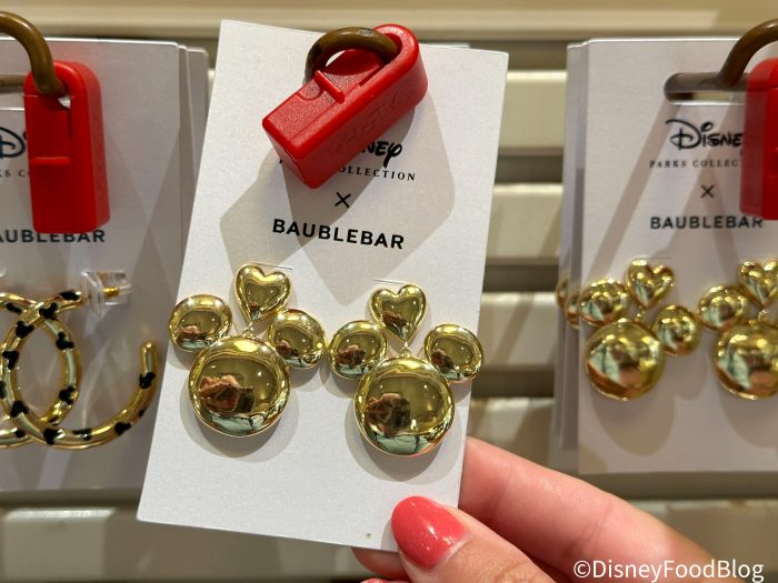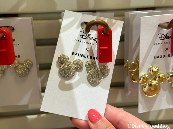 - BaubleBar gold sparkling Mickey head earrings — $48