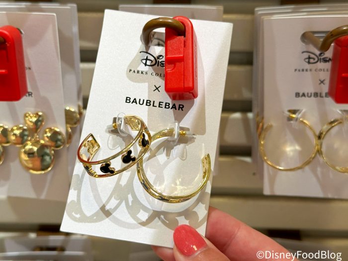 - BaubleBar gold and black Mickey hoop earrings — $48