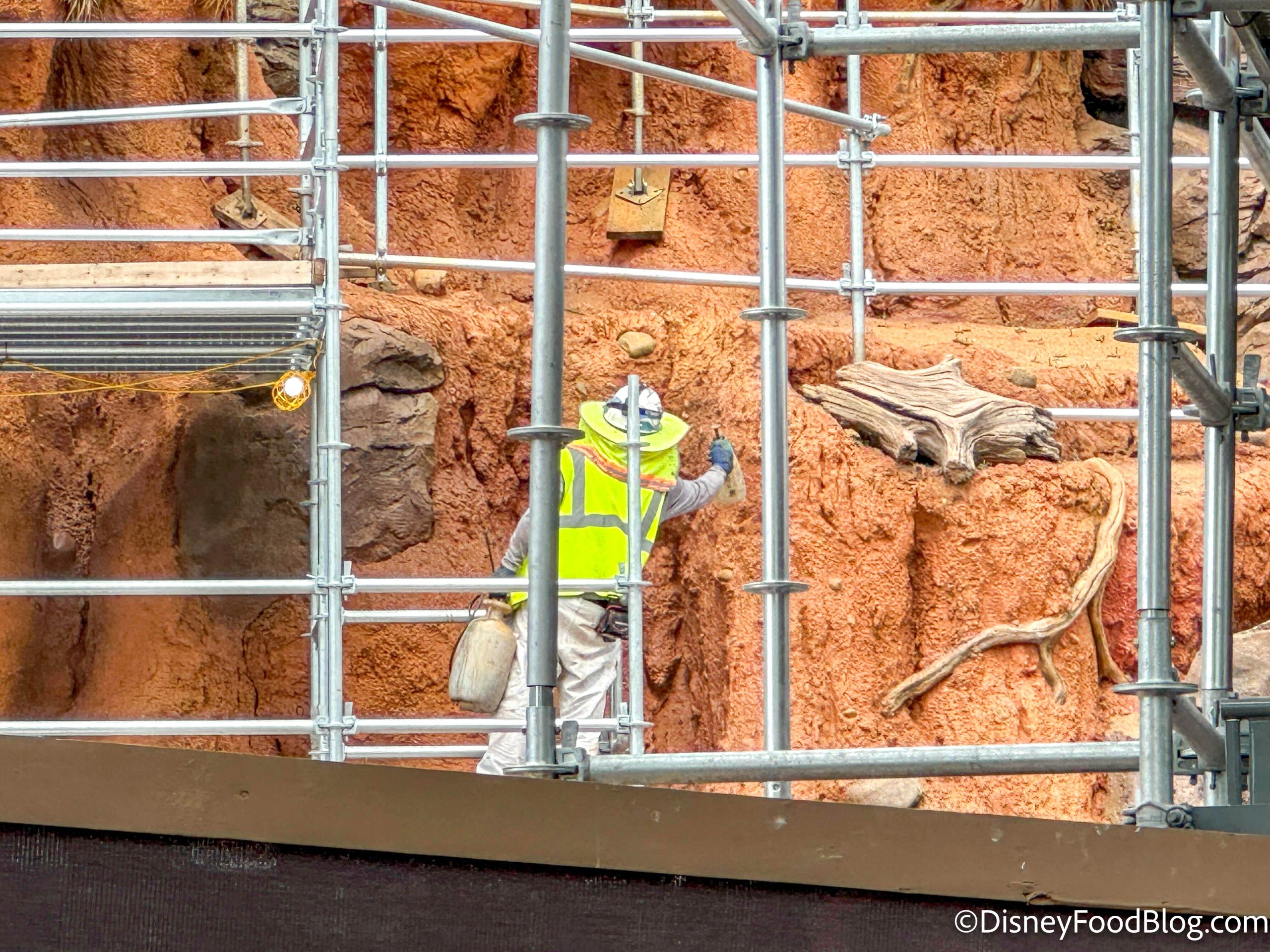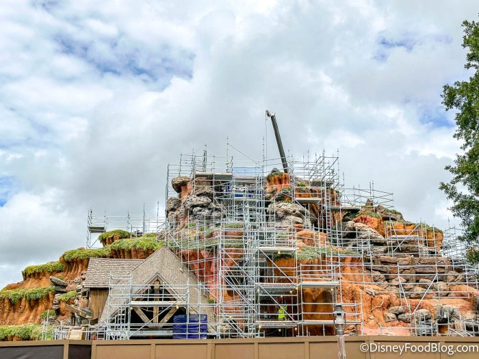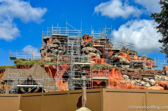 We noticed that more scaffolding has appeared around Tiana’s Bayou Adventure, particularly on the sides of the mountain. It looks like the construction is moving outward from the middle now!