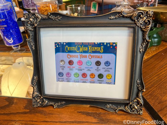- Guests can choose a glass souvenir and a combination of tiny gems, which are mixed by a cast member and carefully poured inside the wish keeper.