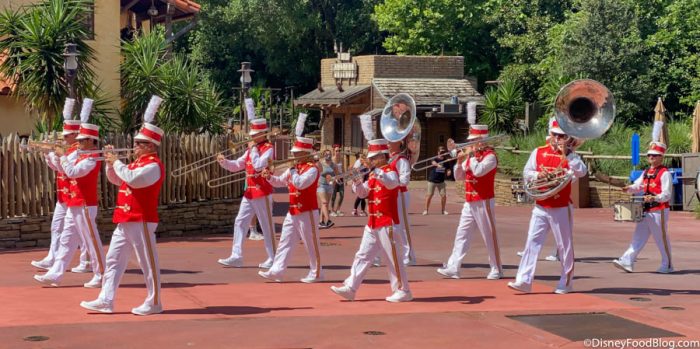 The Main Street Philharmonic is Magic Kingdom’s 12-piece brass band and percussion ensemble.