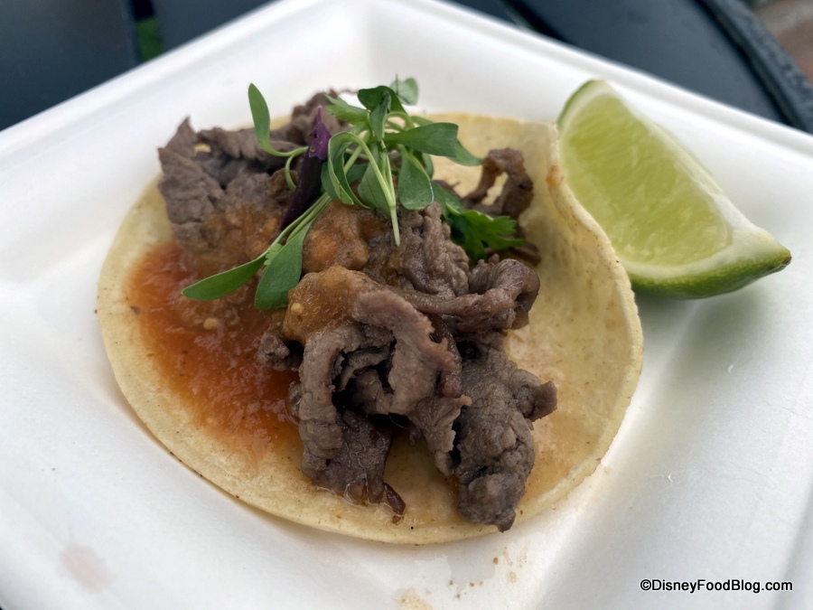 - Ribeye Taco: Ribeye Steak with Ranchera Salsa in a Corn Tortilla topped with Onions, Chives, and a Lime Wedge — $6.95 DDP Snack Eligible