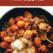 The base recipe is excellent and fully customizable. I made changes to suit our dietary preferences and the dish came out so delicious! We don’t eat land meat so I used minced, browned vegetarian Italian sausage in place of meat based sausage in the sauce. And, we have some in our home who don’t fancy lemon so much so I cut out the zest in the ricotta and only used the juice. Lastly, we try to skip fried foods so for the crunchy topping I just made crunchy fresh bread crumbs using small diced whole wheat bread, garlic, olive oil and salt then browned in a pan until crispy. Lastly, we like our gnocchi on the chewy side so I pan roasted it instead of boiling it before adding to the prepared sauce. This dish won rave reviews in our home! Thanks for the great recipe!!