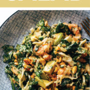 This salad is a cousin to the avocado shrimp salad from years ago! The 2023 version – the one you see here – is more like a slaw, which I am totally loving! And the dressing skips the ginger.