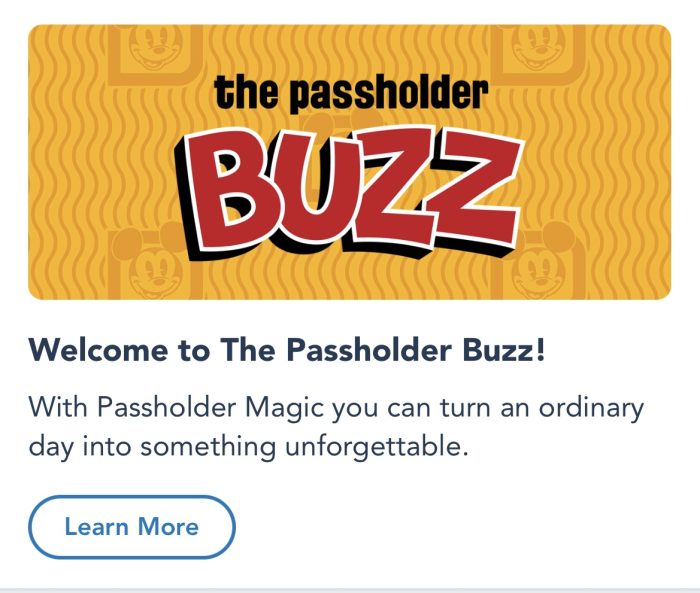 Disney World Annual Passholders have access to special features on the My Disney Experience app. The Passholder Buzz section ensures that Passholders can easily learn about any Disney World Passholder discounts and limited-time happenings such as the popular Annual Passholder Magnet releases!