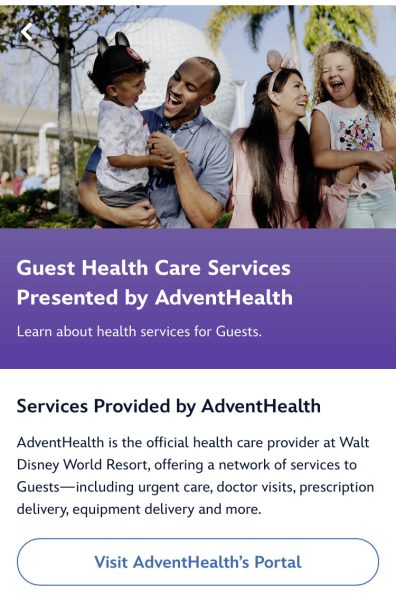 And as part of Disney’s partnership with AdventHealth, there is a section on the app called Guest Care Health Services. You can find it by typing “Advent” in the app’s Search Tool.