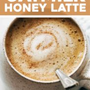 Keywords: oatmilk latte, oatmilk honey latte, dairy-free latte, honey latte, homemade latte