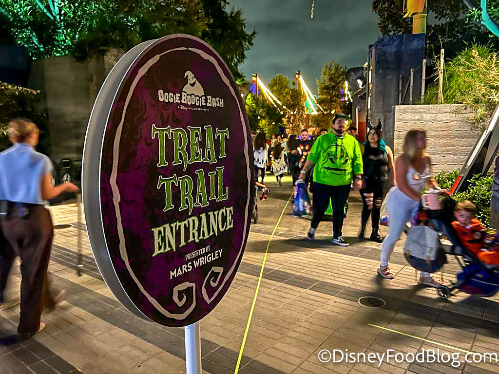 Simply look for the Treat Trail entrance markers around the park. (The treat trails are also designated in the Bash Guide Map with a black cauldron and you can find them in the Disneyland app.)