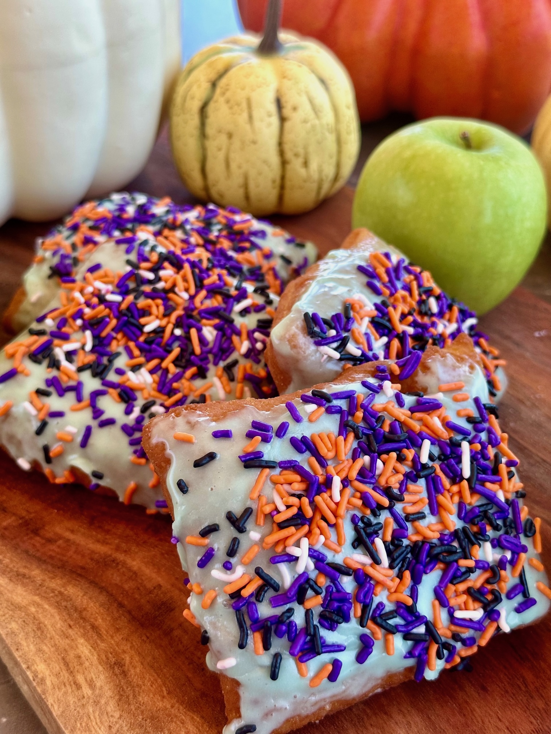 - Hazelnut Brownie Tart: Hazelnut spread and brownie filling topped with purple cream cheese frosting, chocolate moon, bat, and orange sprinkles (Available Aug. 22 through Nov. 13)
