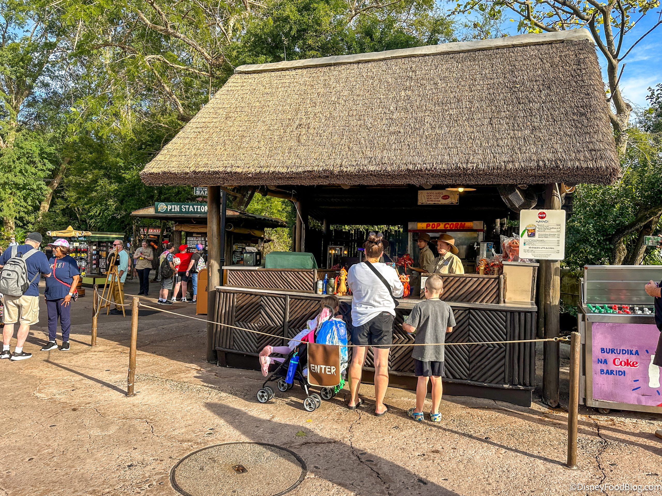 Popcorn Carts can be found in Animal Kingdom at: Discovery Island (at The Feeding Ground Popcorn Cart), Africa (at Mahindi), and Asia (at Thirsty River Bar & Trek Snacks).