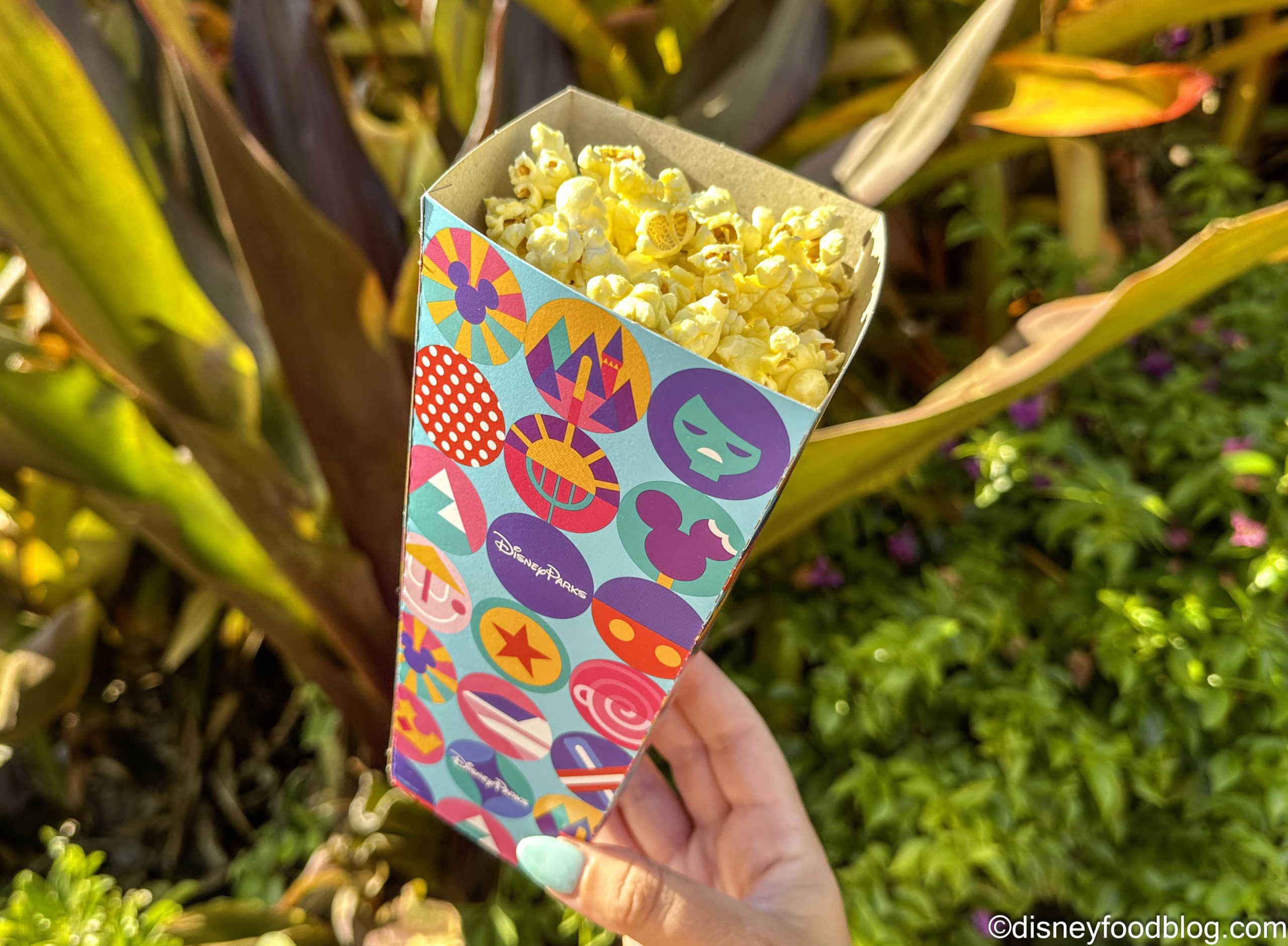 Whenever you’re craving more popcorn, just visit any participating Popcorn Cart, and you can have it refilled with fresh popcorn for $2.49 (or a Disney Dining Plan snack credit). And the best part?