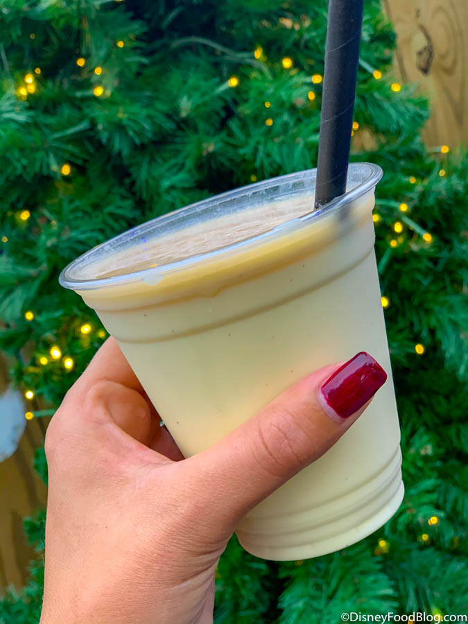 If you love eggnog and want to add a little extra something, this Frozen Eggnog adds Captain Morgan to the mix! It’s available at the Eggnoggery on the Christmas Tree Trail.
