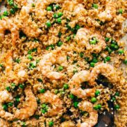 Source notes: I was introduced to a sheet pan cauliflower rice recipe when I made the Sheet Pan Jambalaya from Charlotte’s cookbook (her blog is Clean Foodie Cravings). It’s such a great method! We’re revisiting the method here with a new flavor profile.