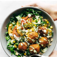 I know I’m going off the beaten path a little bit here. but mostly, more than anything else, the feeling is just SUPES EXCITED to eat a big bowl of fresh, end-of-summer vegetables loaded with that creamy, perfectly tangy, and just a little bit spicy jalapeño ranch.