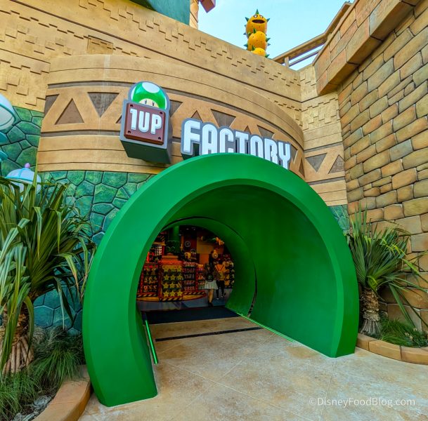1-UP Factory and Mario Motors carry souvenirs, apparel, toys, and more inspired by iconic Super Mario characters.