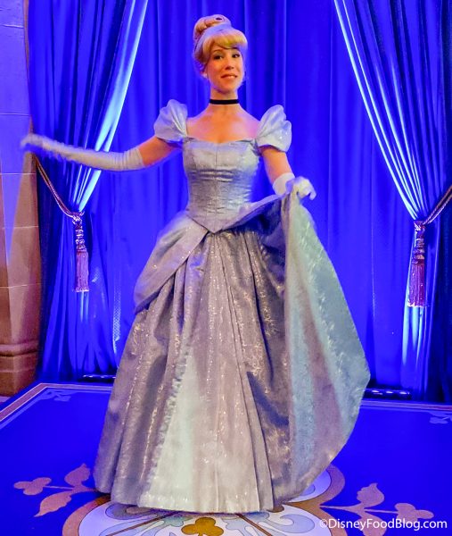 Characters at this recently refreshed dining experience include Aladdin (in his Prince Ali look), Cinderella, Mirabel from Encanto, and Tiana in her new outfit for Tiana’s Bayou Adventure. They are all present to “celebrate the power of a wish” at Wish Makers Enchanted Dining!