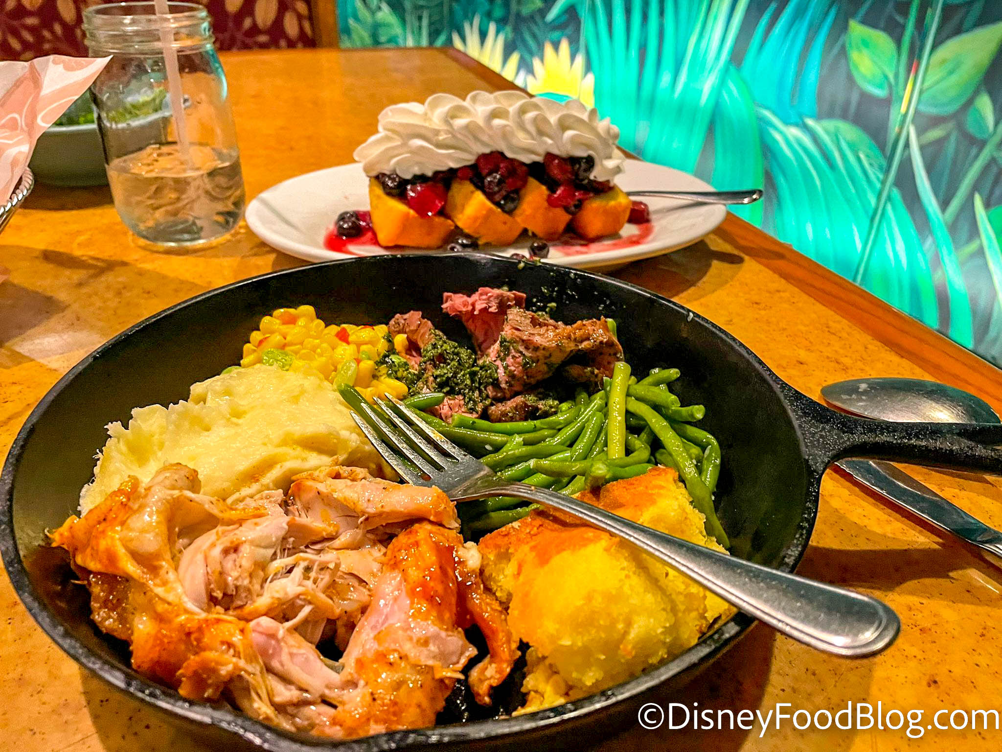 Sharing tastes of Africa with a special Jiko flourish, this restaurant doesn’t offer a great view or any characters, but it does offer truly beautiful food — and the Animal Kingdom Lodge savanna is right outside…
