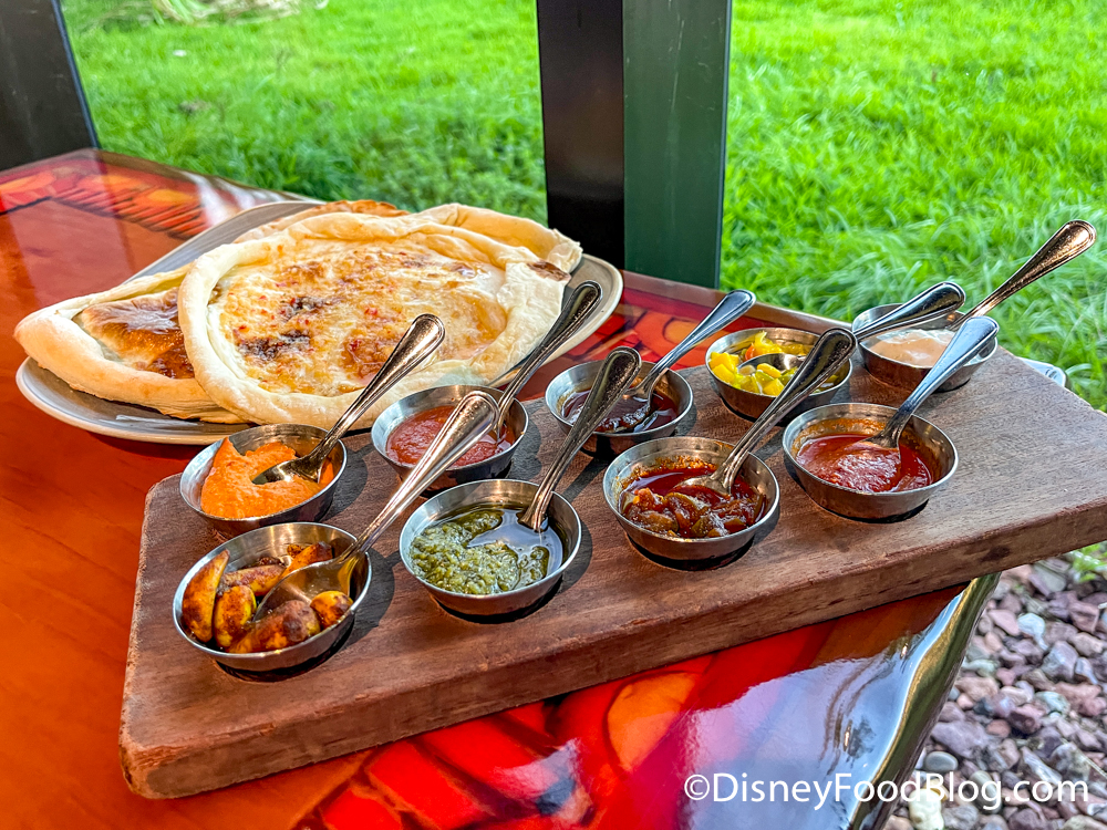Tucked into the Animal Kingdom Lodge’s Kidani Village, Sanaa, which means “Work of Art” in Swahili, is a beautiful restaurant serving a fusion of African and Indian cuisine made with authentic cooking methods like slow-roasting and tandoori oven cooking.