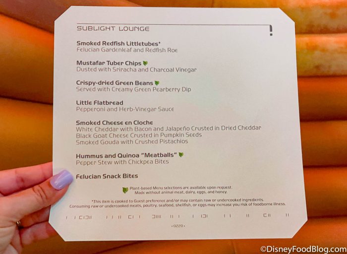Sublight Lounge also serves a small menu of (surprisingly good!) food options that are included with a stay on the Galactic Starcruiser: