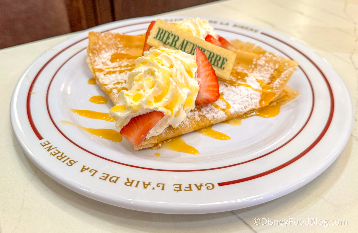 The star of the show, earning rave reviews across the board from the get-go, is the Butterbeer Crêpe! Also on the French-inspired menu is a Baguette de Dinde, Quiche Lorraine, Salad Niçoise, and MUCH more. A Dirigible Plum Juice Mocktail is featured among the drinks (along with Butterbeer, of course!).