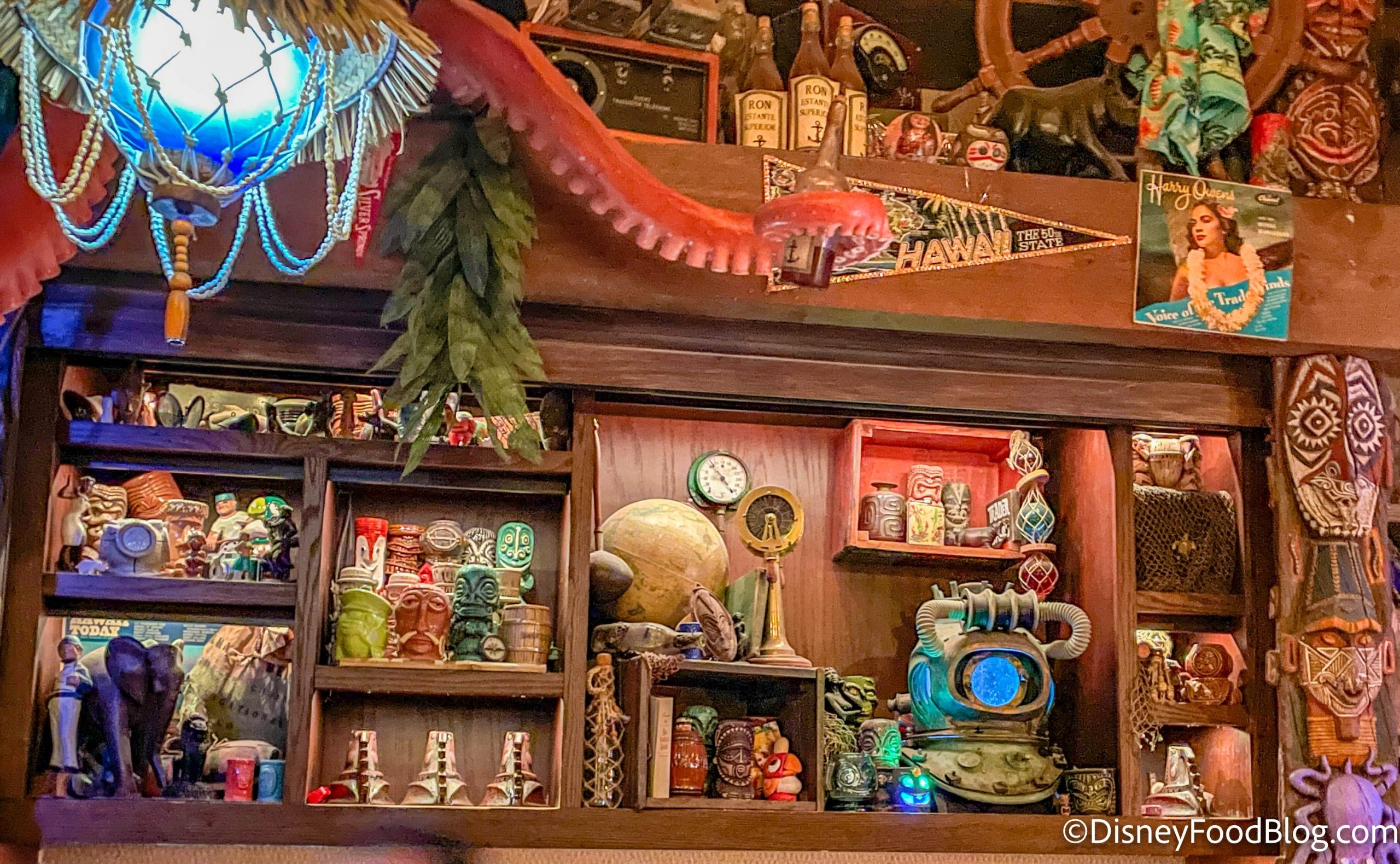 Trader Sam — the famous Head Salesman of Jungle Cruise fame — has collected artifacts from all over the globe in his travels and has brought them to his “happy hideaway” in Disney’s Polynesian Village Resort: Trader Sam’s Grog Grotto!