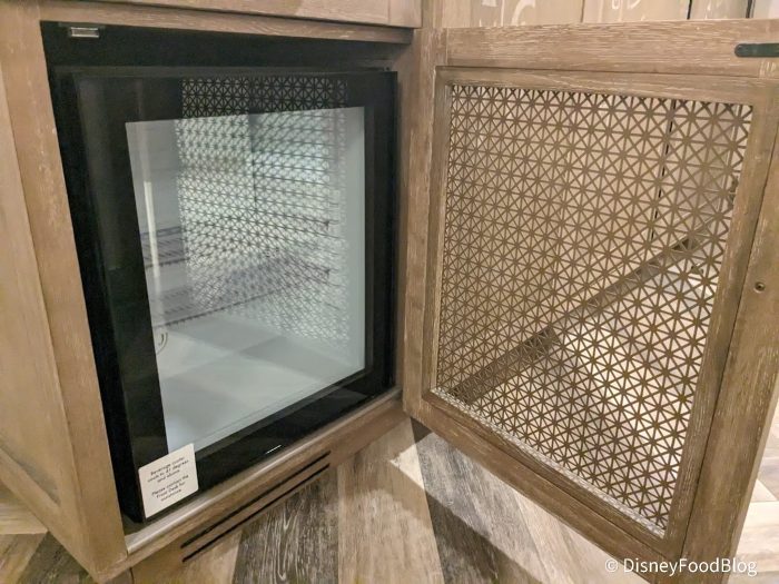 Below is a mini-fridge, perfect for storing your dinner leftovers for a midnight snack.