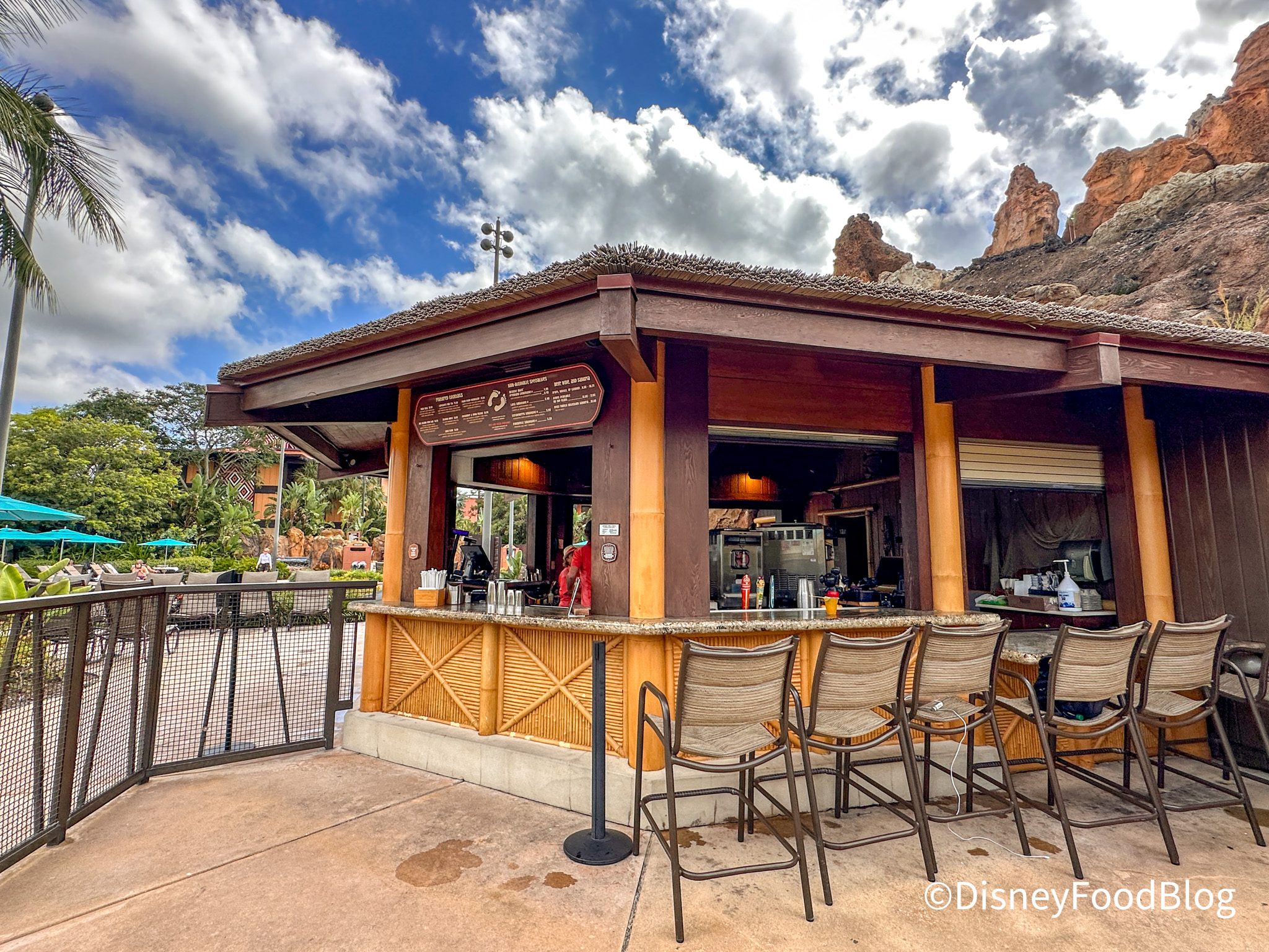 And this is where you’ll find the Oasis Bar & Grill, ready to serve up Polynesian-themed food and specialty cocktails to folks making a splash at the pool.