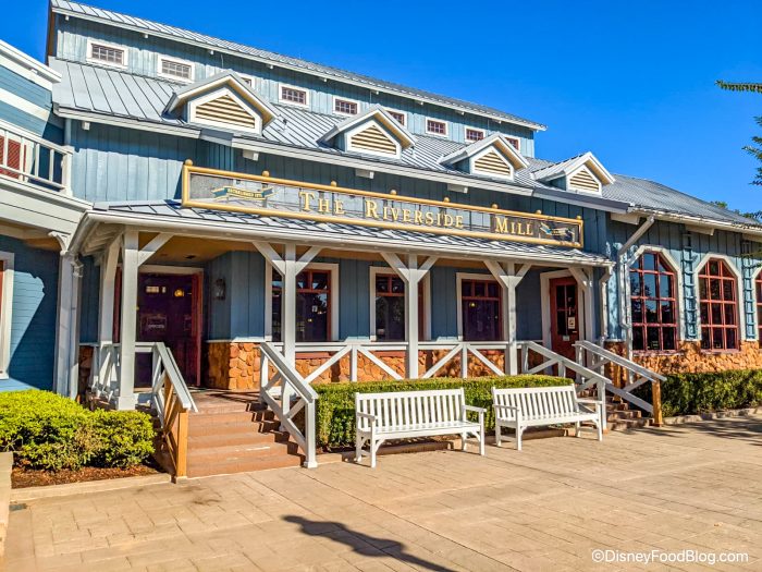 Riverside Mill Food Court features Counter Service classics like burgers, pizza, and pasta alongside a few Southern-inspired dishes, all with a view of a 32-foot water wheel through the window.