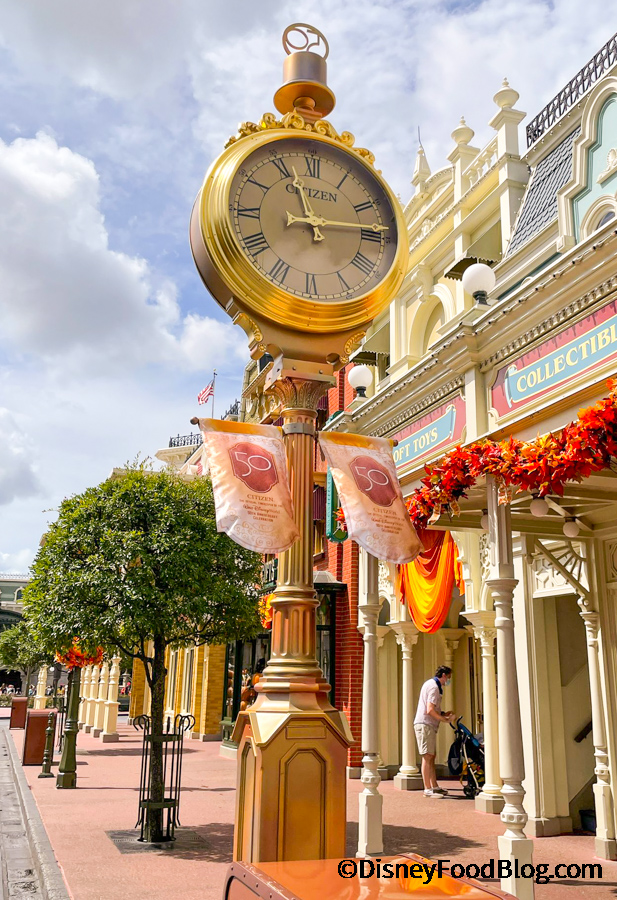 And you can meet — and HUG! and get your photo taken with! — Mickey AND Minnie in their 50th Anniversary outfits at Town Square on Main Street, U.S.A. in Magic Kingdom.